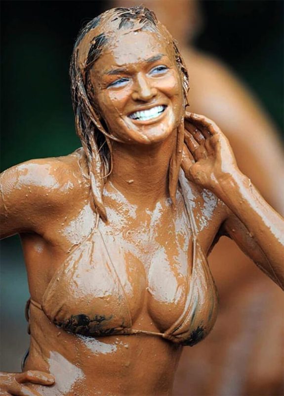 This girl has taken the mud bath trend to another level, fully coated in the thickest layer of countryside skincare money can’t buy. Only her pearly whites remain untouched, gleaming like a toothpaste commercial in the middle of all that earthy goodness. Judging by that beaming smile, she’s either found the fountain of youth or just won the mud queen title.