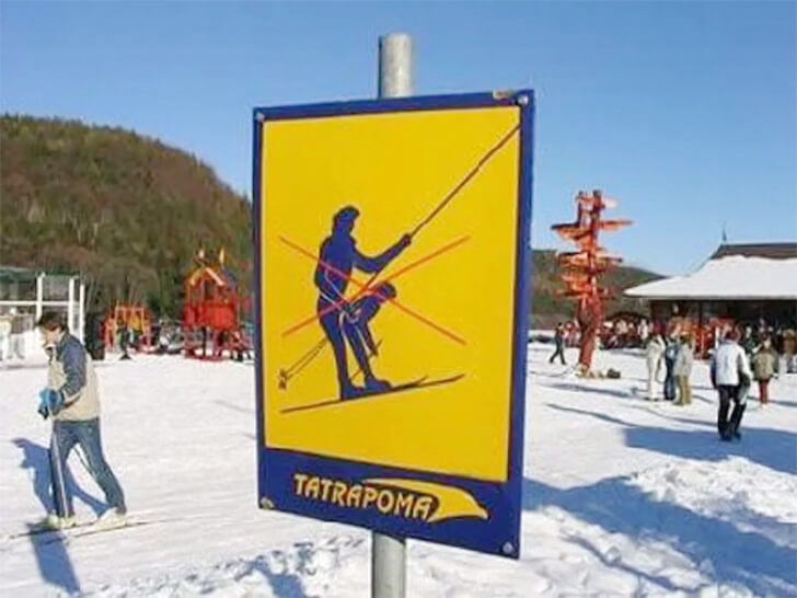 At the Tatrapoma ski resort in Slovakia, a sign is causing more laughs than safety awareness. Meant to warn parents against letting children ride on their skis, the sign shows a child crouched low in front of an adult, but the awkward positioning suggests something far less appropriate.